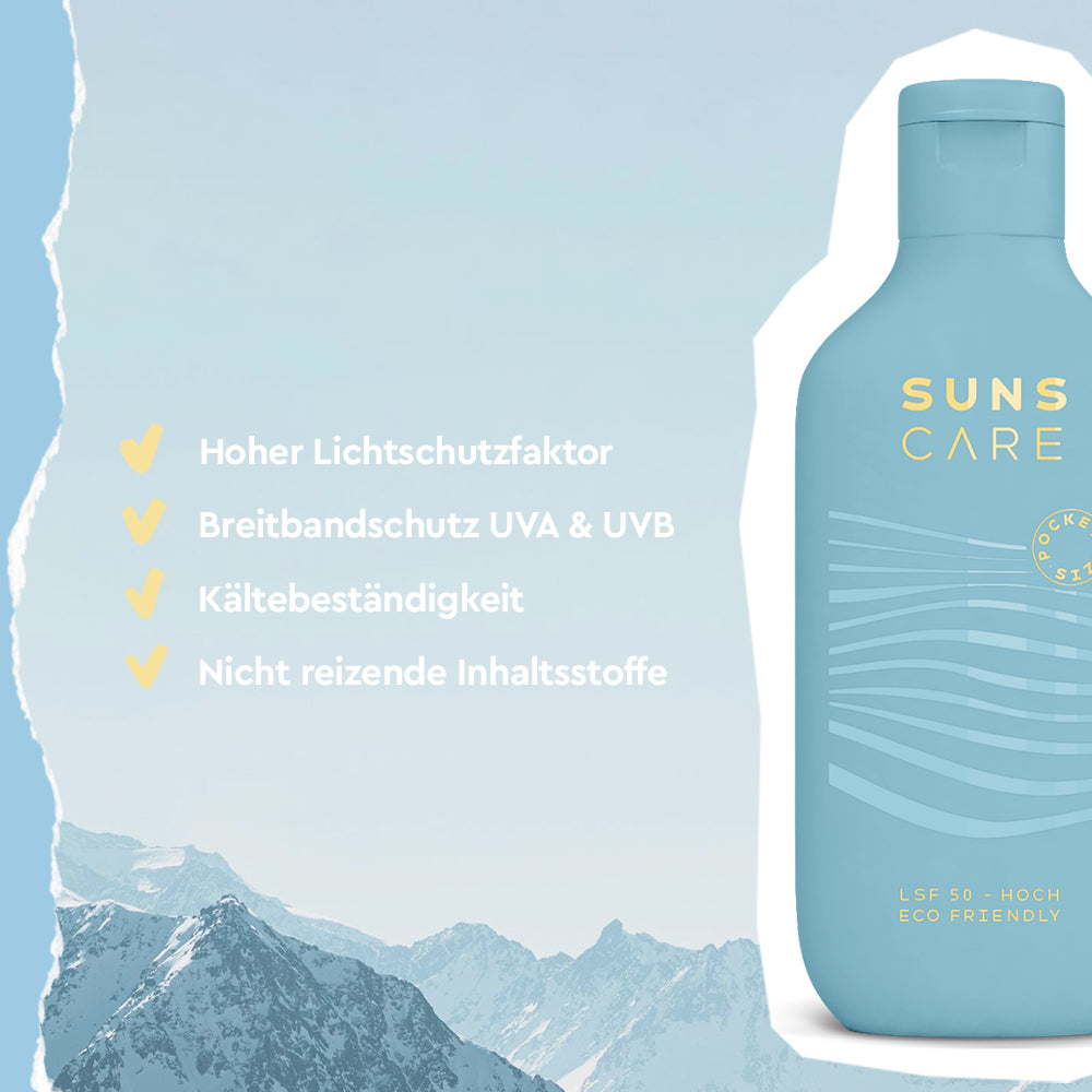 Unser nachhaltiger Sonnenschutz ist die perfekte Wahl für deinen Ski- und Winterurlaub. Entwickelt, um die intensive Sonneneinstrahlung und kalten Bedingungen standzuhalten, bietet unsere Sonnencreme effektiven Schutz gegen UVA- und UVB-Strahlen.